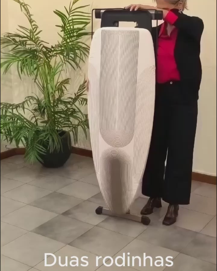 Uma combinação perfeita entre modernidade e elegância. Sustentada por uma estrutura de perfis fechados em alumínio anodizado, que a torna substancialmente mais leve e estável do que uma estrutura de aço equivalente. A Tábua de Passar Roupas Styl Pro Wheels da Afer caracteriza-se ainda, por possuir uma ampla superfície para passar. Graças às soluções de design utilizadas, ocupa um lugar mínimo ao guardá-lo. Possui rodinhas nos pés da frente para auxiliar na locomoção.
